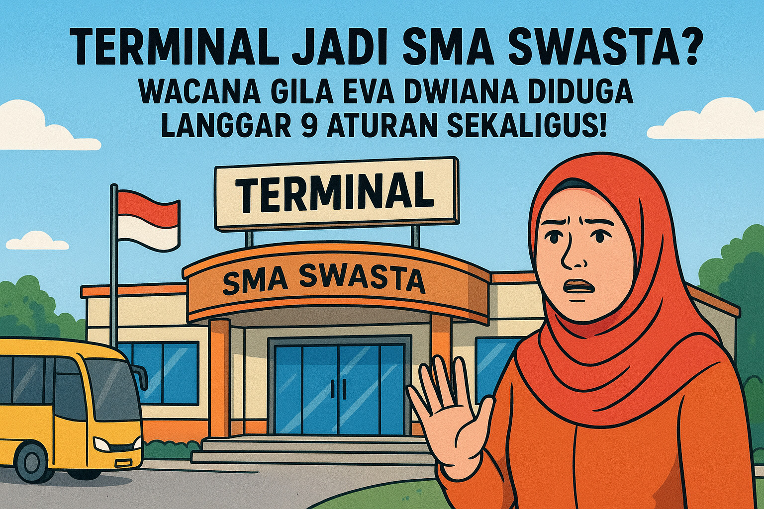 SKYSHI MEDIA– Polemik demi polemik terus menghantui Pemerintah Kota Bandar Lampung. Setelah sorotan tajam soal dana hibah Rp60 miliar untuk Kejaksaan Tinggi Lampung, kini publik kembali dibuat tercengang dengan wacana nyeleneh Wali Kota Eva Dwiana. Ya, terminal Panjang diduga bakal dialihfungsikan menjadi SMA swasta Siger!