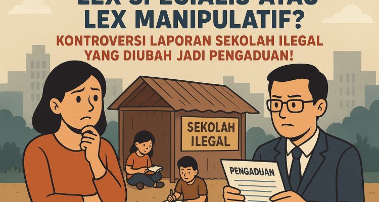 Lex Specialis atau Lex Manipulatif? Kontroversi Laporan Sekolah Ilegal yang Diubah Jadi Pengaduan Skyshi Kreatif|October 13, 2025by Shifa Yuhananda SKYSHI MEDIA- Di tengah kegelisahan masyarakat terkait keberadaan sekolah ilegal dan liar,